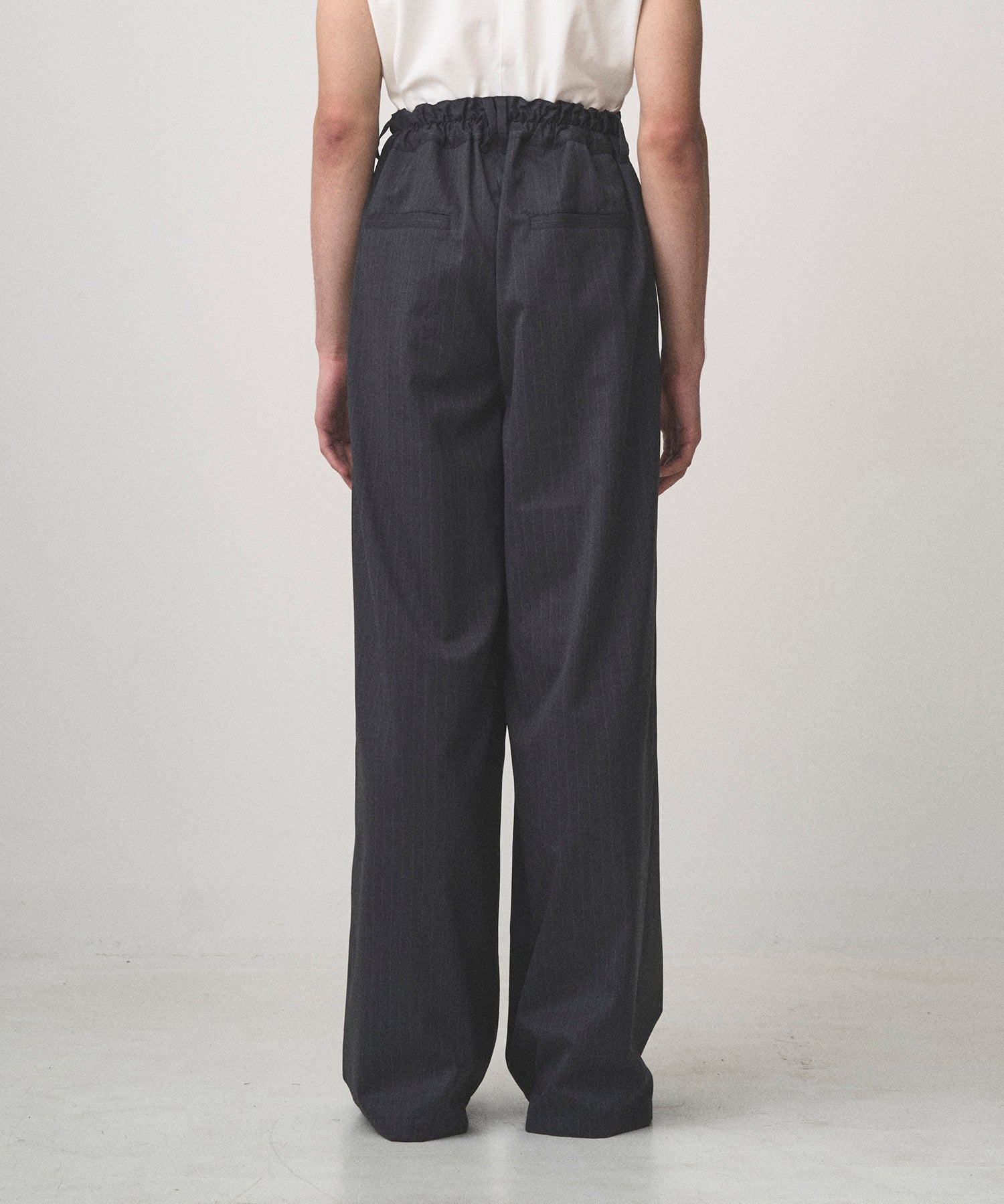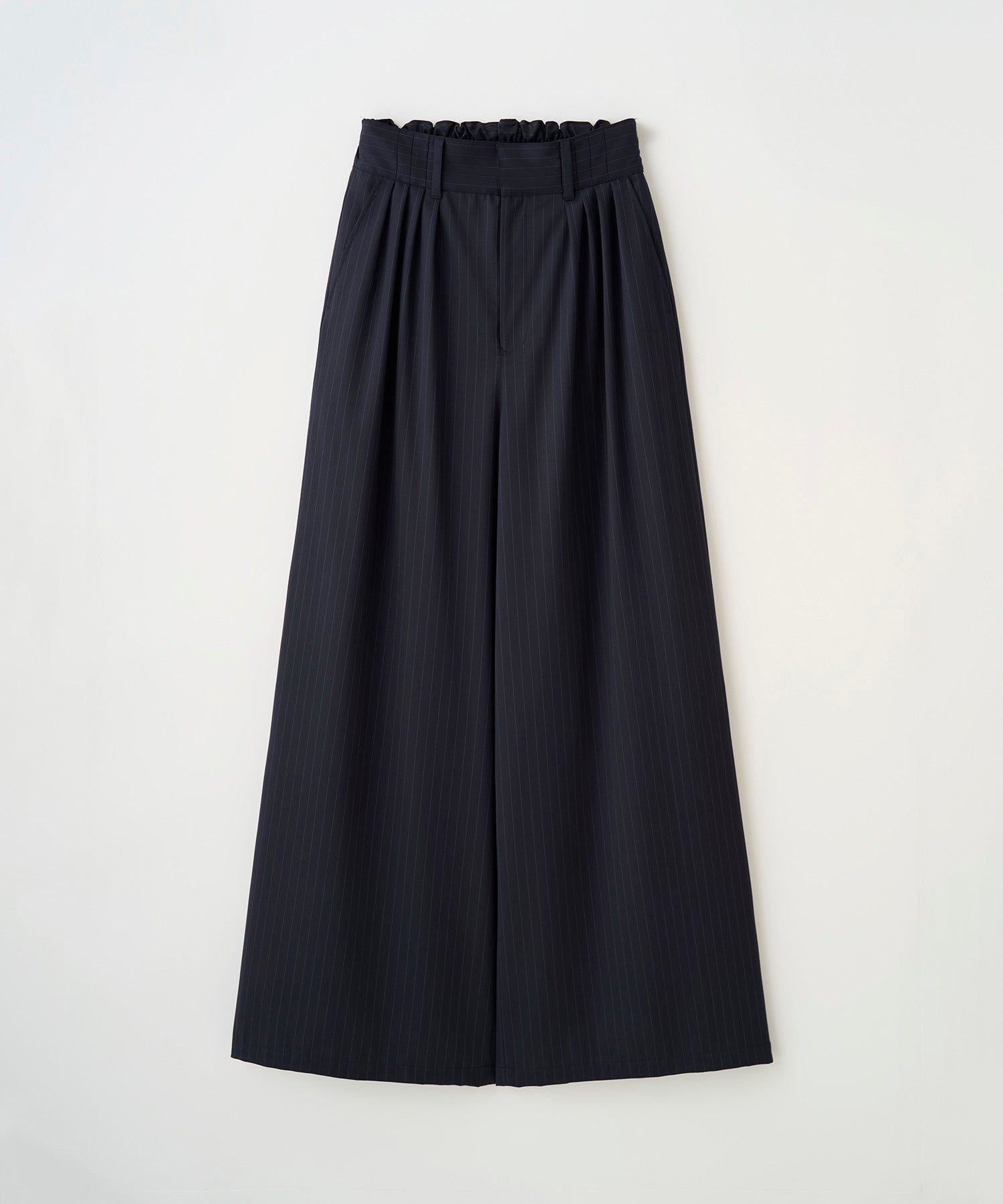 極端なハイウエストと深い 3 タックによって生まれる、構築的で迫力のあるワイドシルエット。