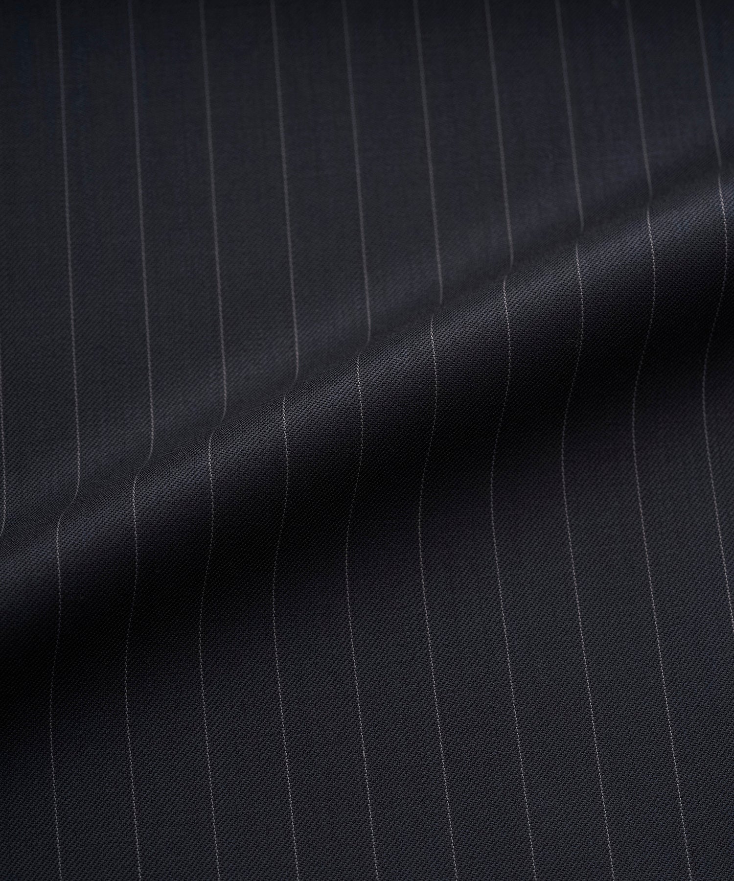 REPREVE® を混紡したストレッチウールを採用したストライプ素材。ポリウレタンに比べて形態回復性に優れ、膝抜けや肘抜けなどの型崩れを抑制します。ウールとの馴染みも良く、天然素材の風合いを保ちながらストレッチ性を備えた素材です。