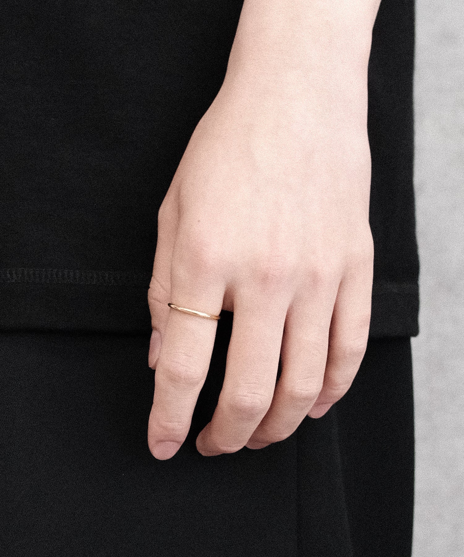 ・素材を生かしたミニマルなデザイン。2mm 幅の華奢な仕様、山高甲丸で滑らかな付け心地。