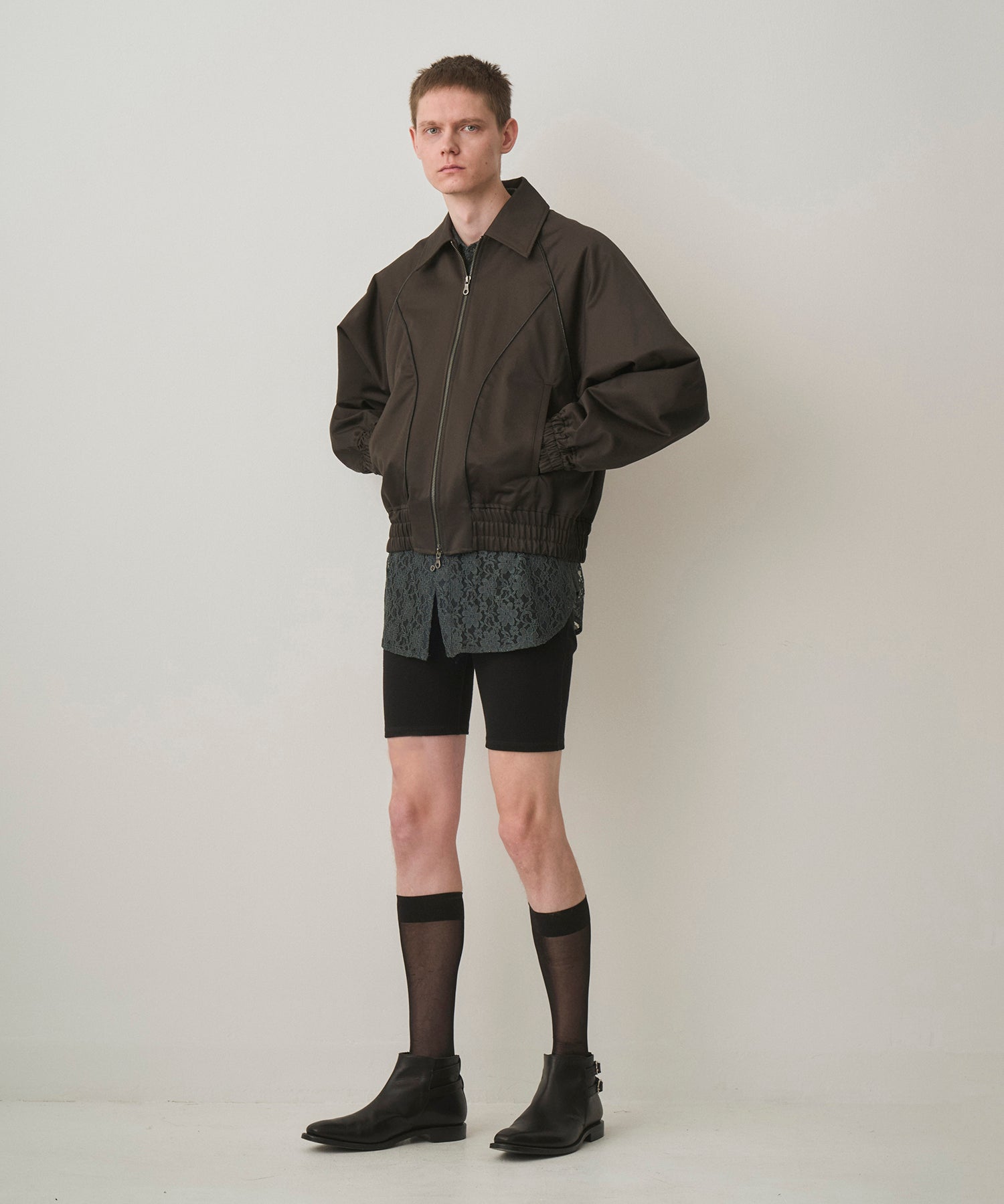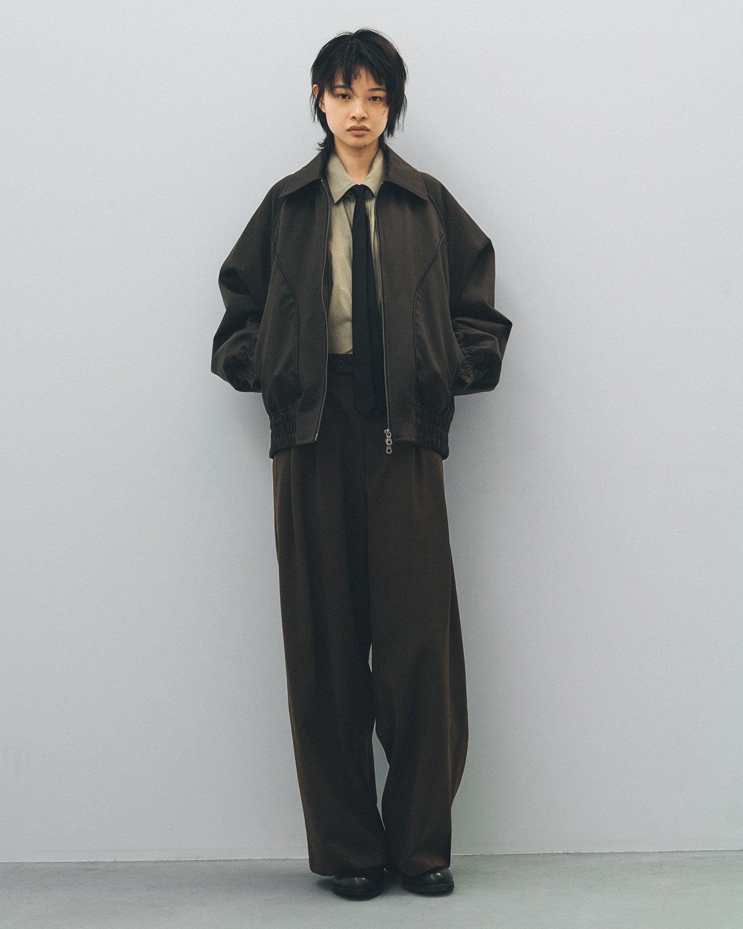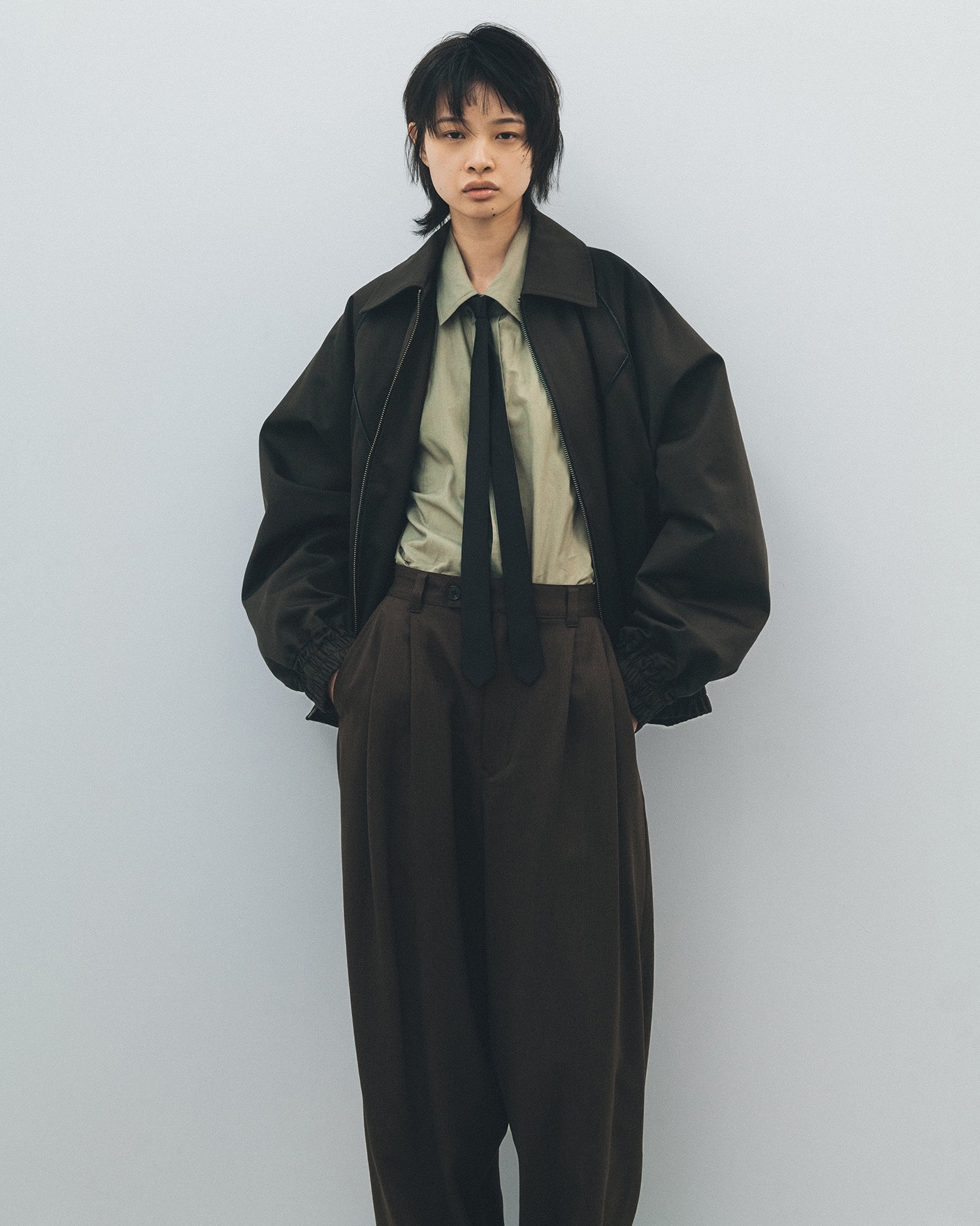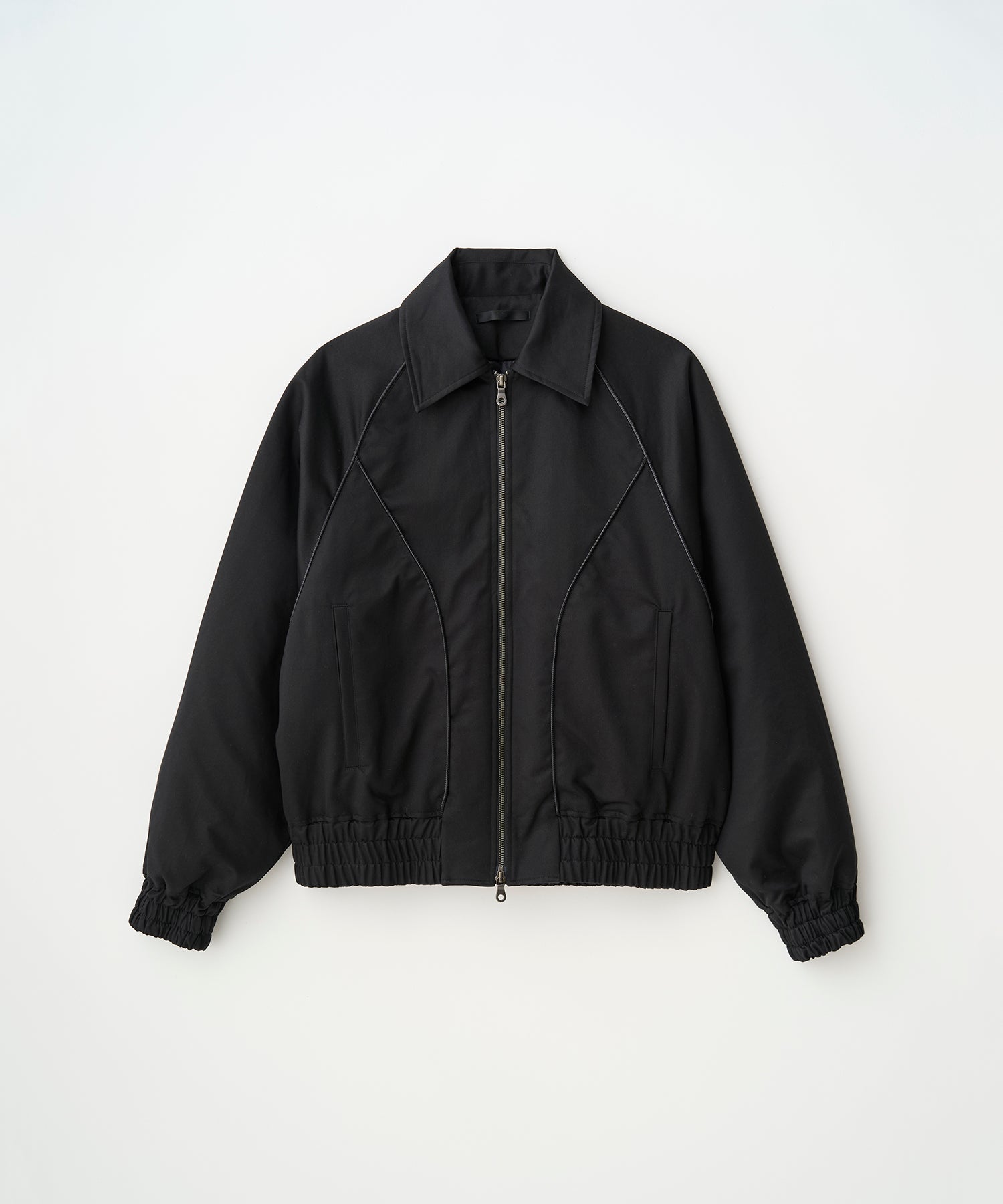 ・中綿入りのボンバージャケット。太めのアームホール、ショート丈、やや強めに配した裾ゴムで丸みのあるシルエット。後身頃はインバーテッドプリーツで立体感を表現
