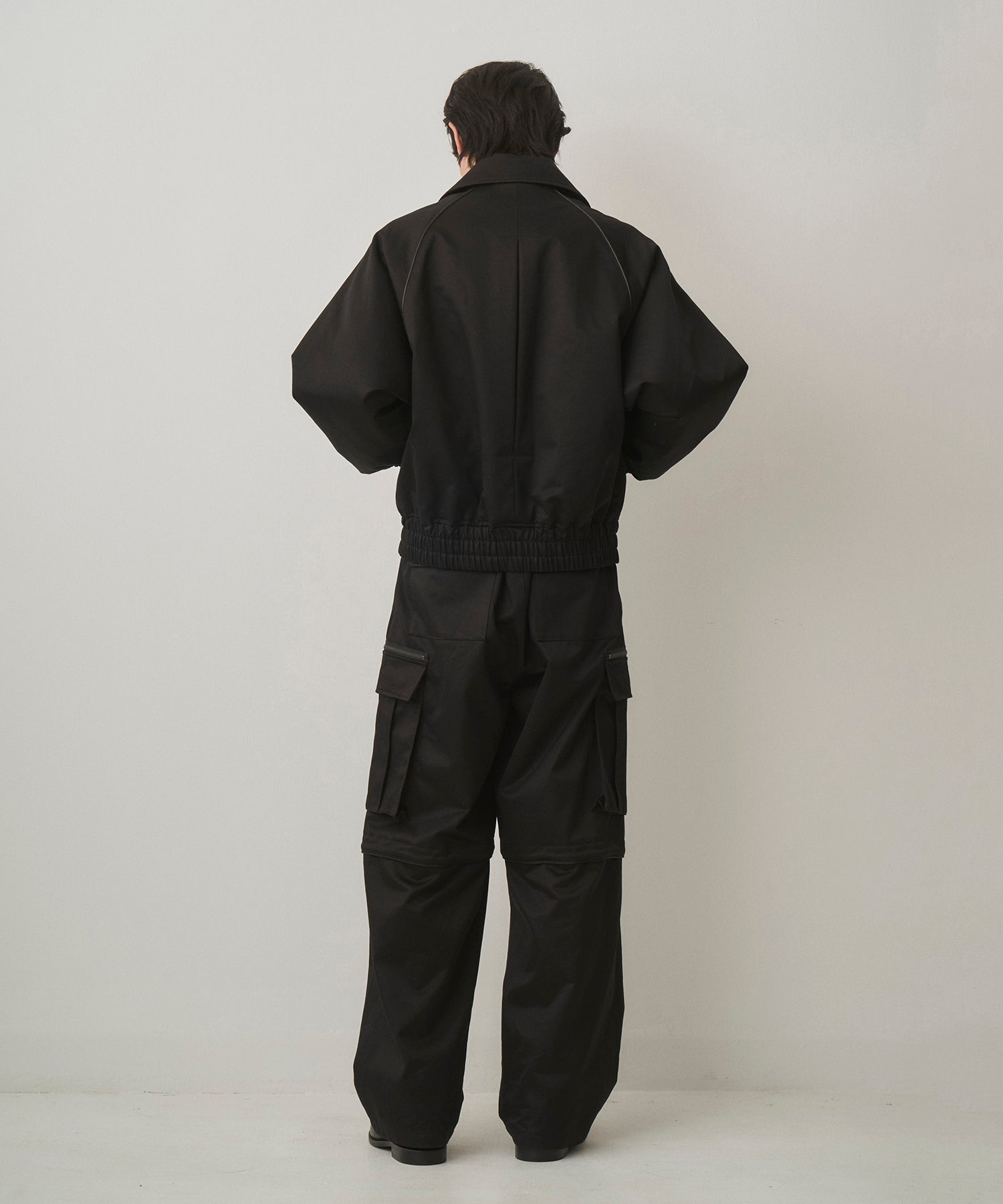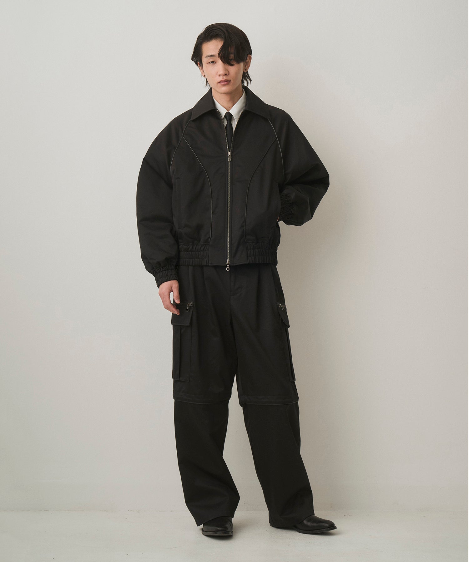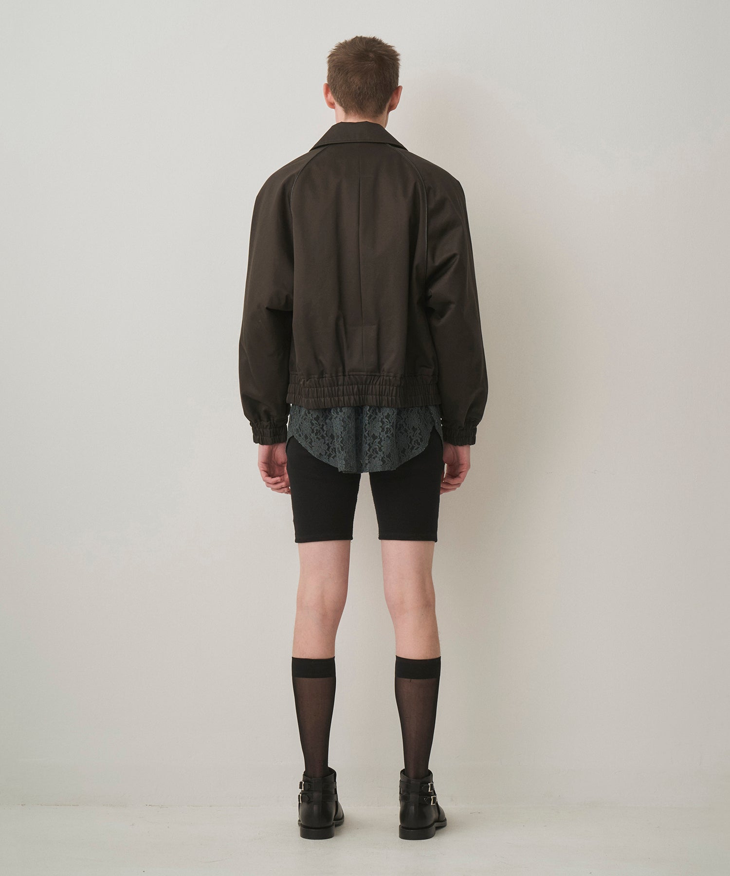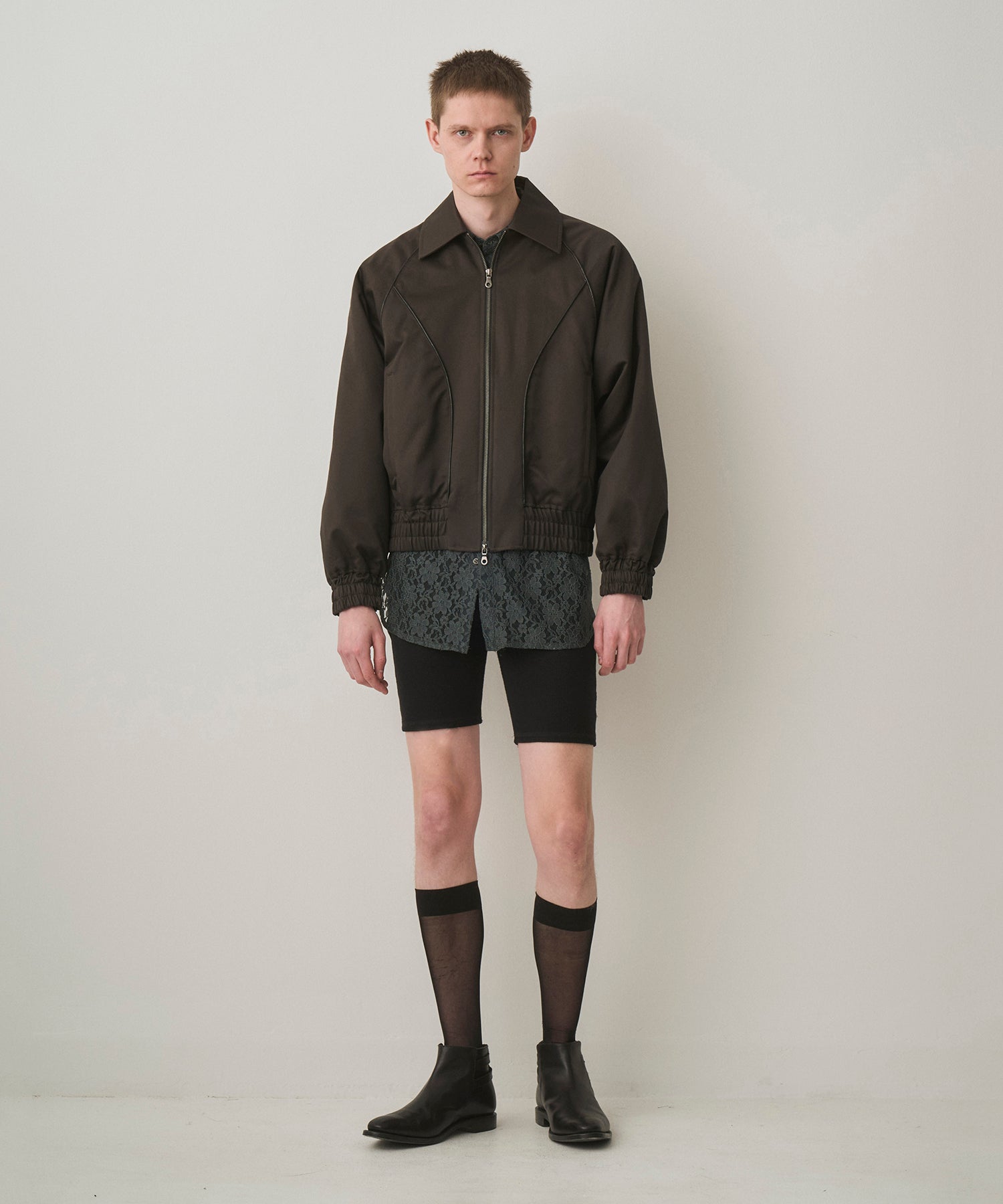 ・中綿入りのボンバージャケット。太めのアームホール、ショート丈、やや強めに配した裾ゴムで丸みのあるシルエット。後身頃はインバーテッドプリーツで立体感を表現