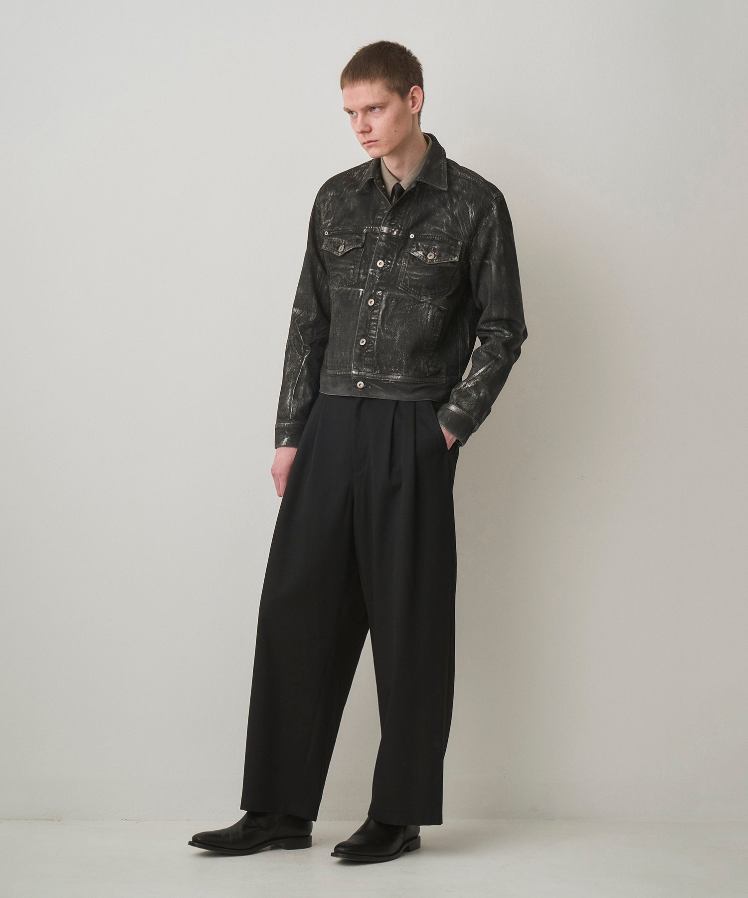 ・表地には、硬すぎない 13 オンスのムラ糸のブラックデニムを使用。3 シーズン対応の快適な着用感を備えています