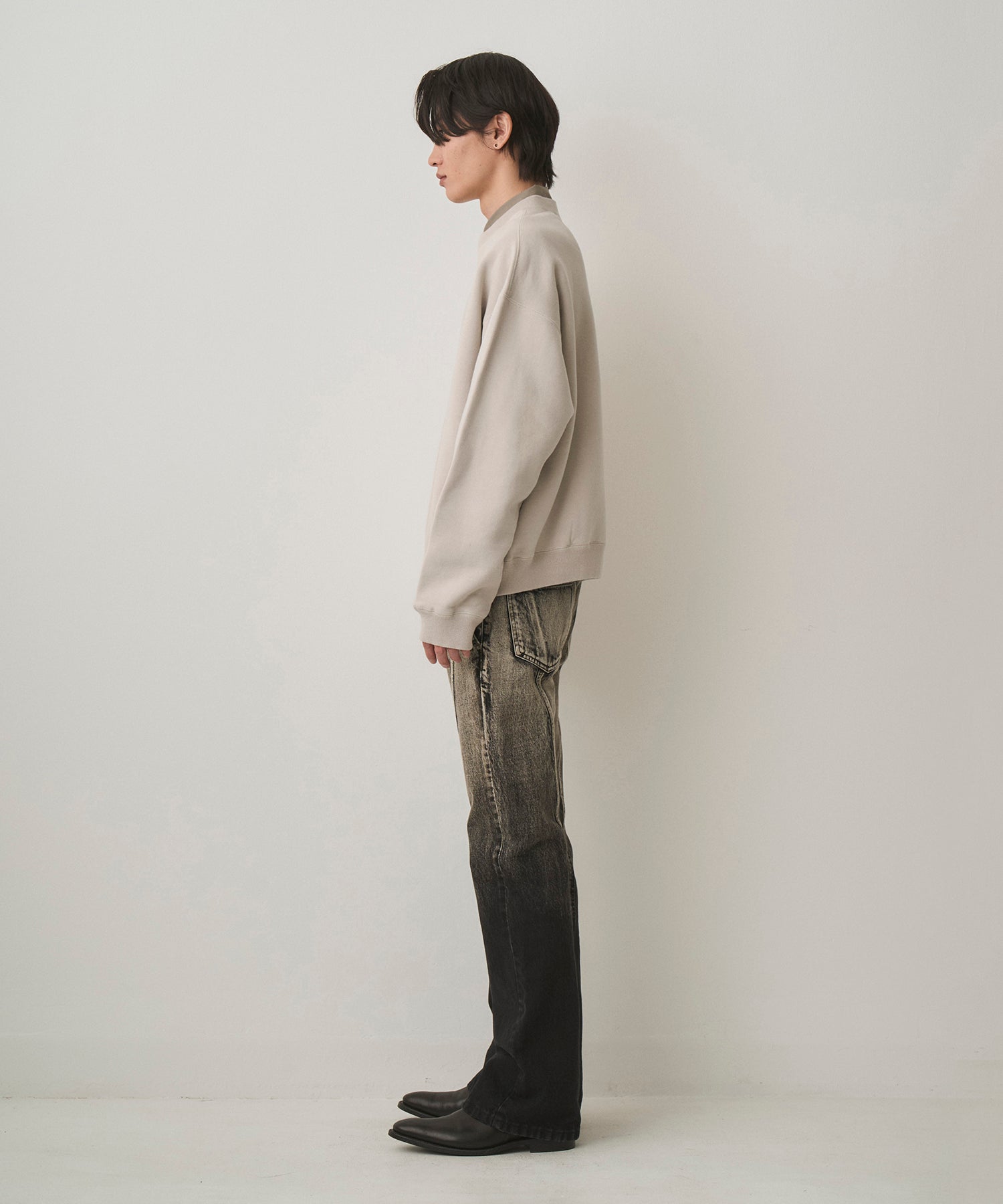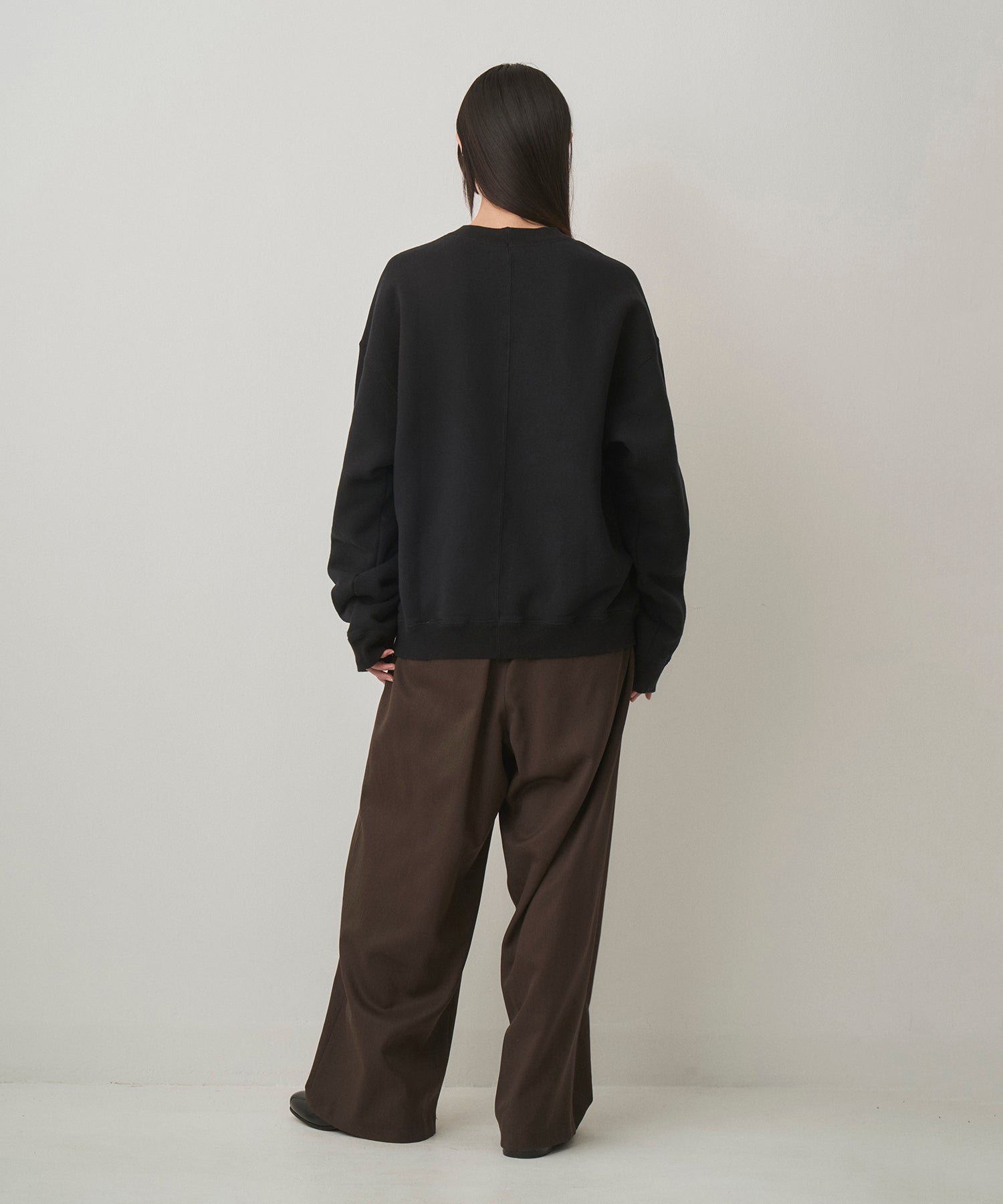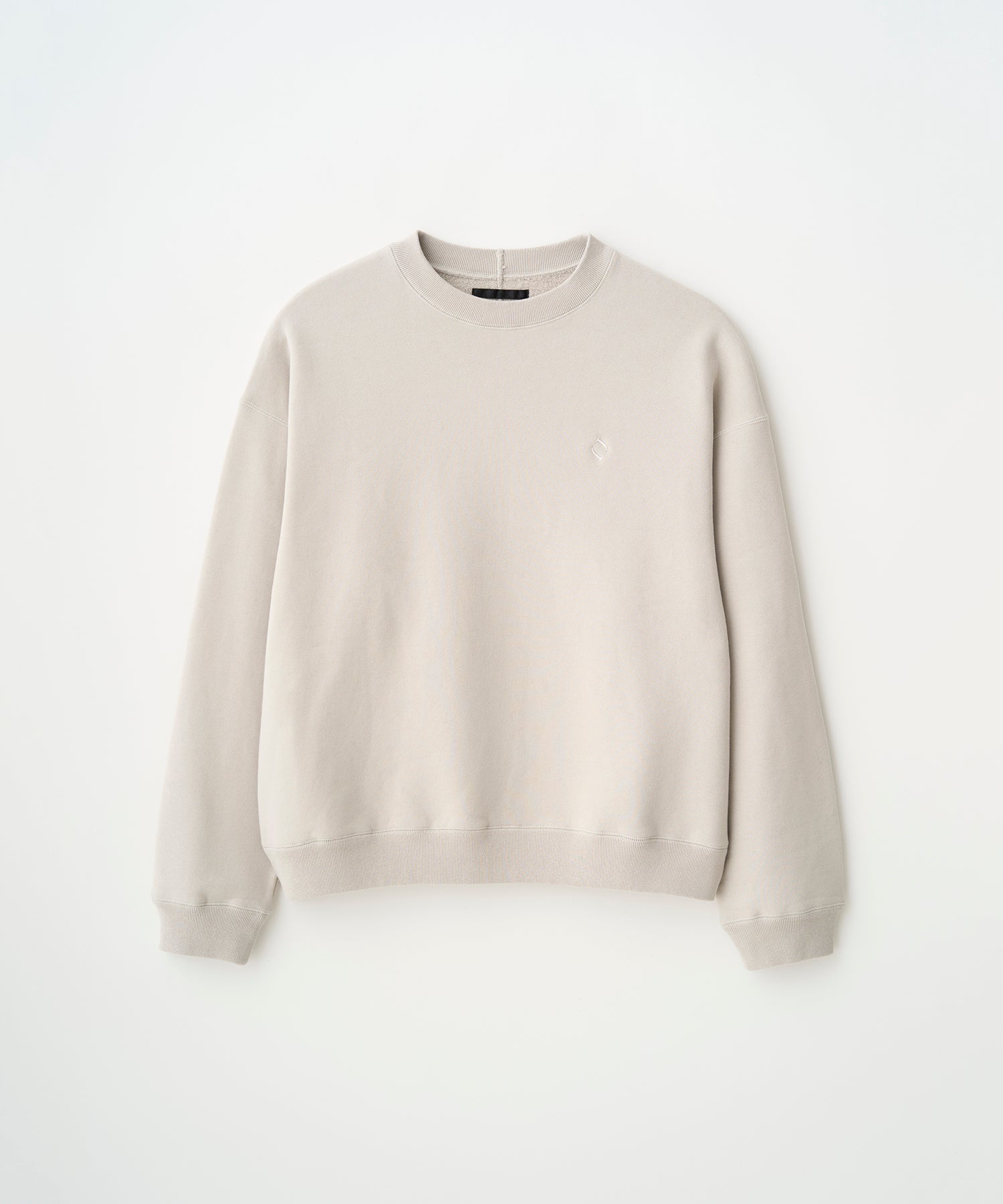 ・プルオーバースウェット。両振りの三本針ステッチを採用し、太めのアームホールと短丈のバランスで、ゆとりのあるリラックスシルエット
