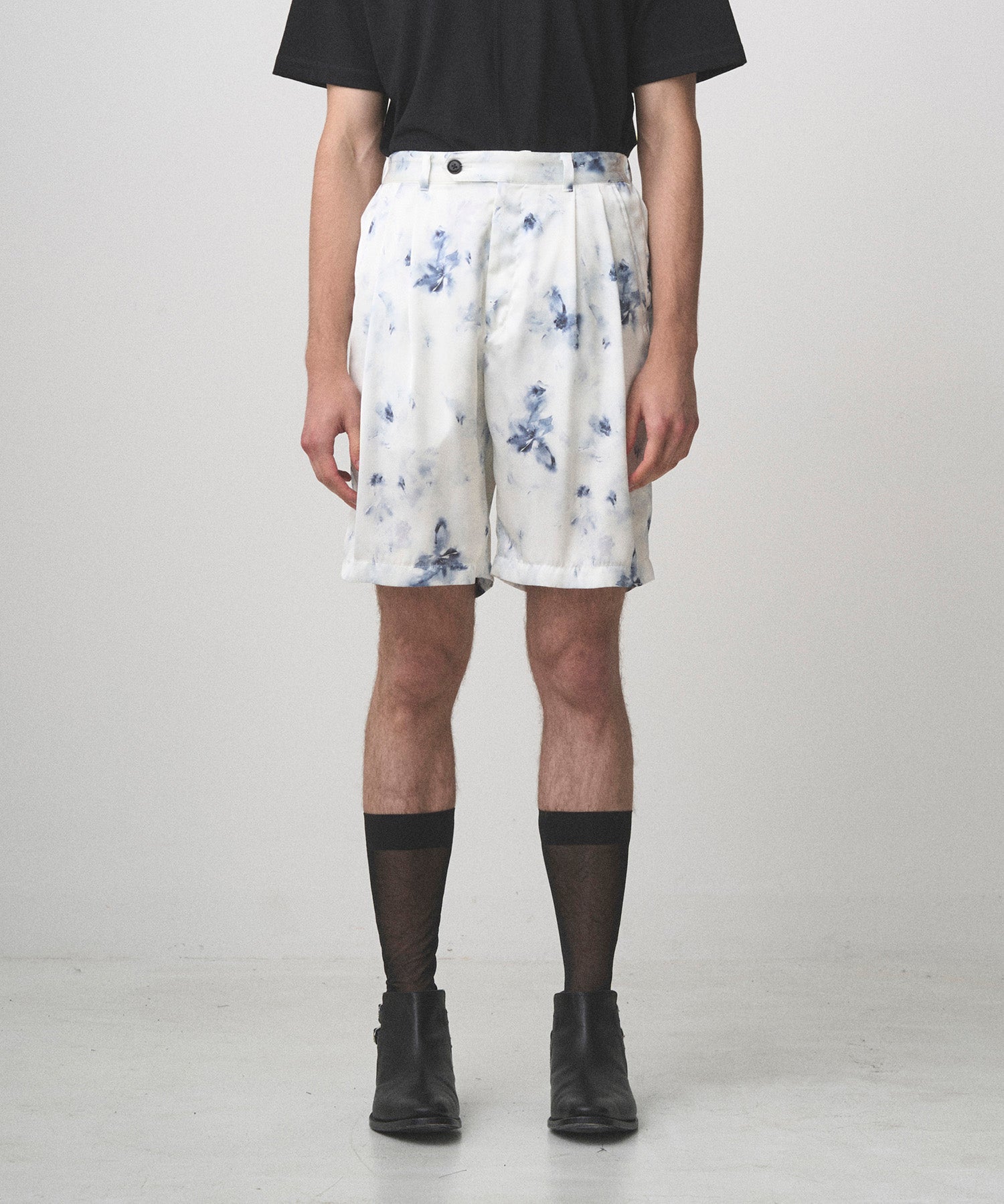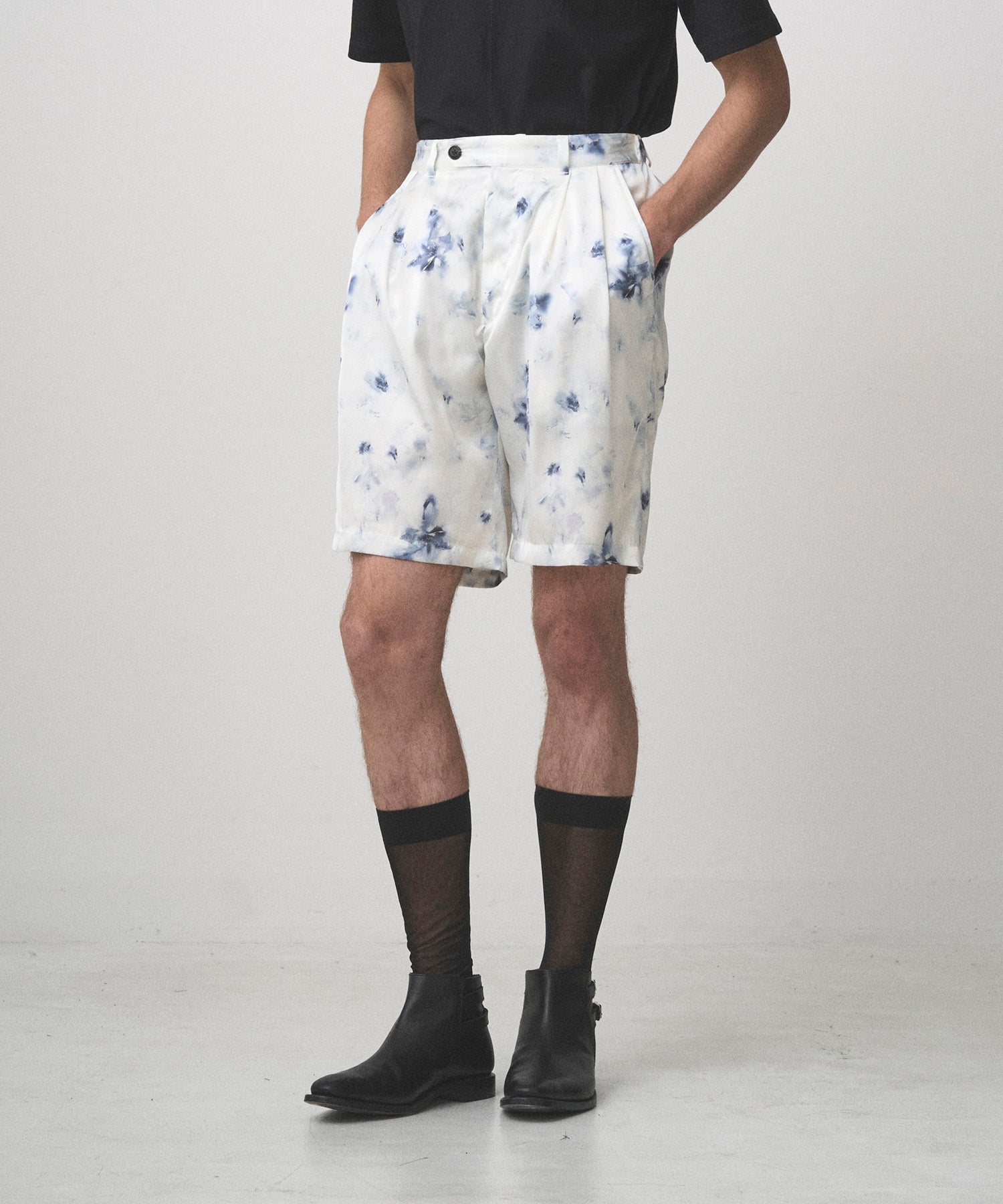 2タックで腰まわりにゆとりをもたせたセミワイドシルエットのショーツ。